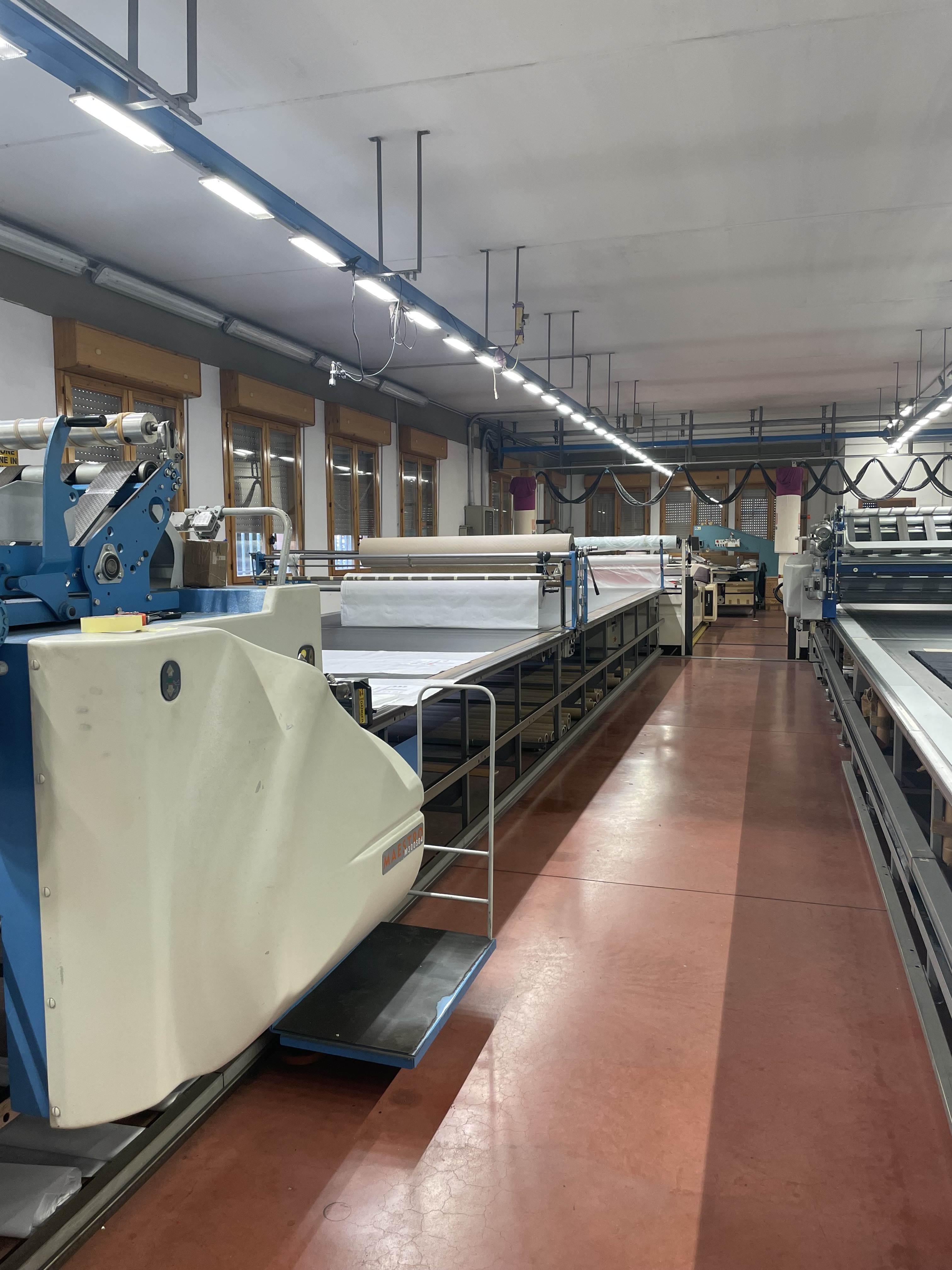 I nostri 3 stenditori 4.0 a culla con conveyor da 13 metri garantiscono stesura rapida e uniforme su grandi superfici. Con tecnologia avanzata e controllo digitale, offrono precisione e riducono al minimo tensioni, pieghe e scarti, ottimizzando la produttività in ogni fase.